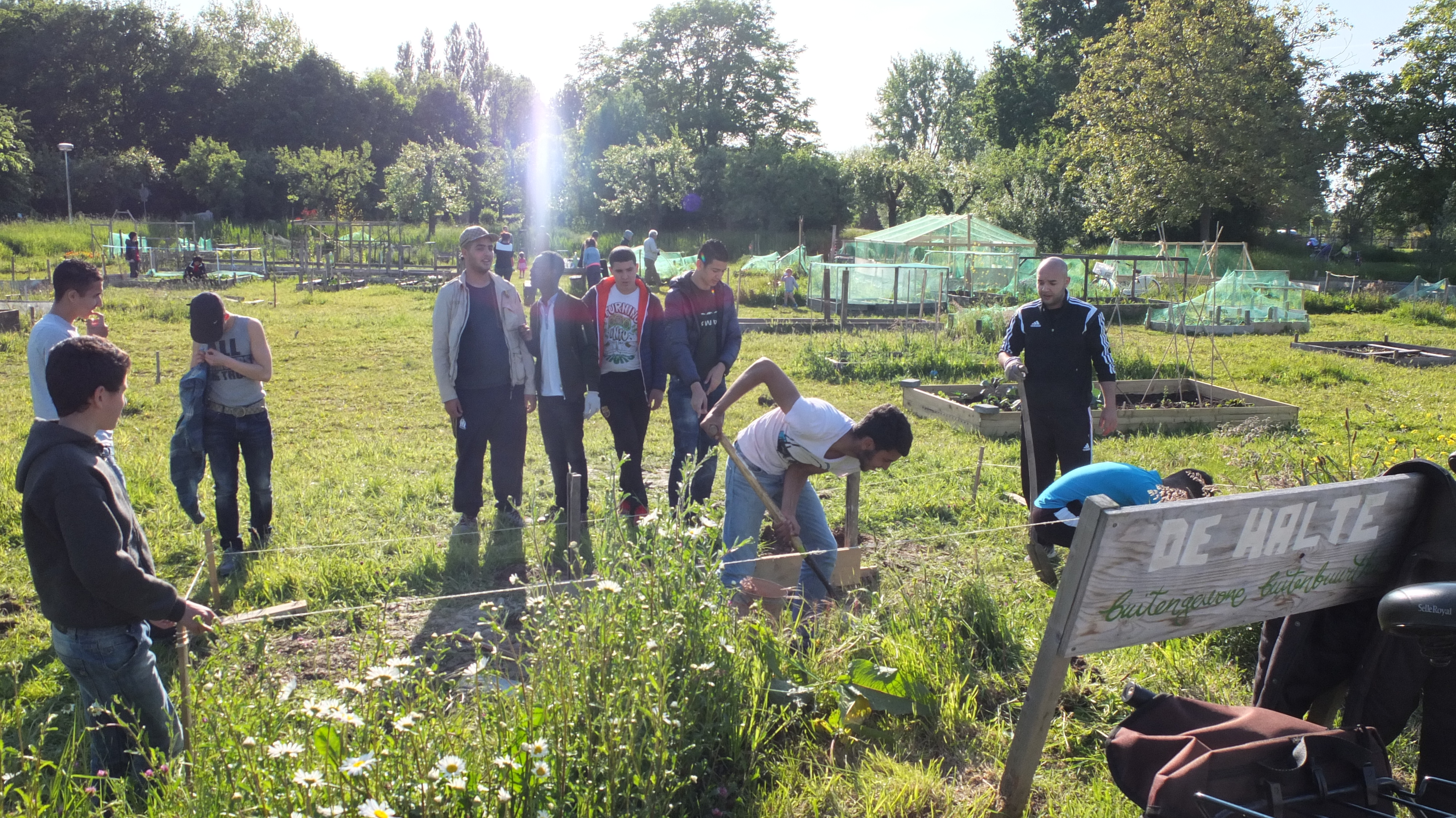 'de Halte' consisted of a plot where residents could cultivate vegetables and fruits but mostly meet with each other. the Outsiders had build de Halte from day one along with the residents, so as to stimulate mutual involvement. During the year 2015 we had erected an eatable bus stop where we could spend our summer days.