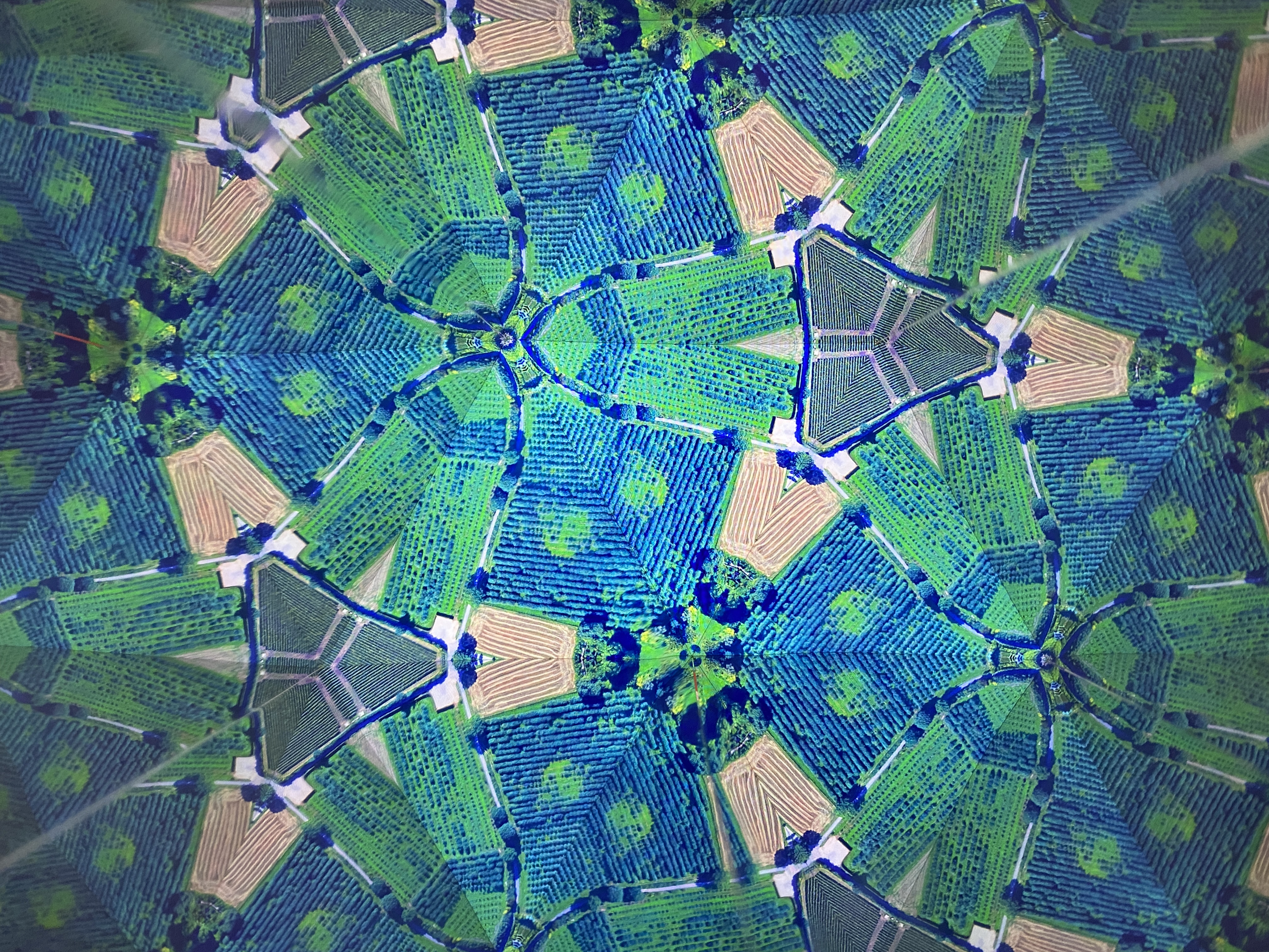 Formerly a wagon covered in mirrors to blend into the surrounding landscape, The Traveling Farm Museum now bears a kaleidoscopic image of the Maastricht city border and its neighboring farmlands. Accompanied by a soundscape of the countryside, The Outsiders move as mooswiefs through the public square, engaging those around them in a conversation about food, heritage, and the possibility for a common future.